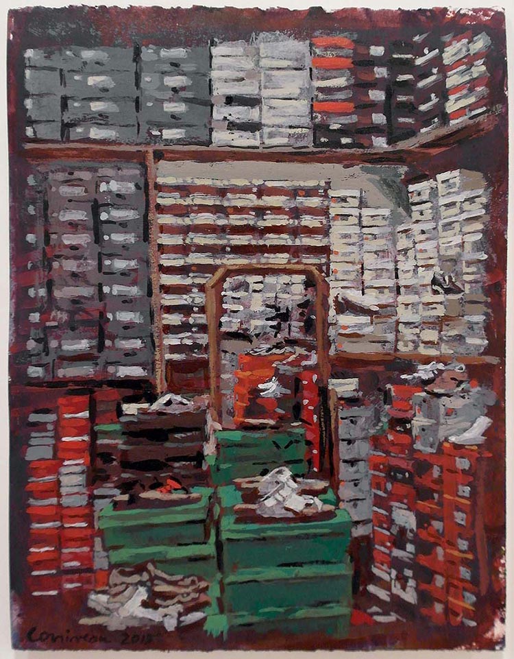 Magasin de chaussures (de la série Collections), 2015 / acrylique sur papier, 28 x 21 cm