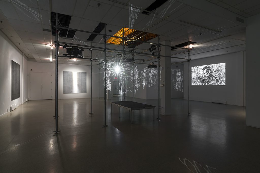 Le Musée d’art contemporain des Laurentides accueille le projet Cyclages du Grupmuv. Fondé par trois professeurs de l’École des arts visuels et médiatiques de l’UQAM en 2008 et rattaché à Hexagram-UQAM, le Grupmuv est un laboratoire de recherche-création dédié au dessin et à l’image en mouvement (www.grupmuv.ca). L’exposition regroupe cinq de ses membres : Catherine Béliveau, Michel Boulanger, Thomas Corriveau, Jonathan Plante et Gisèle Trudel (Ælab).